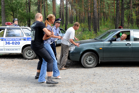 А в это время к оцеплению подъезжает одна похоронная процессия, вторая, третья — завидев пробку на несколько сот метров, вообще разворачивается. «У нас же похороны на два часа. Тело из морга забрали — такая жара, полный автобус народу, столовая заказана! Вы что?»,— вопрос возмущенных без ответа. Не пускают старушек, пришедших с веночками в руках поклониться могилкам близких и слезно просящих пропустить их — ведь они-то точно не террористки. От ворот поворот дали и батюшке, который приехал из Верхотурья в сопровождении родственников. Видно, что издалека — на машине московские номера. «Нам вот сразу за вашим оцеплением пятая могилка. Пустите, пожалуйста, мы так долго ехали»,— чуть не в ноги кланяется господам в погонах женщина. А ей лишь отрицательное мотание головой в ответ.