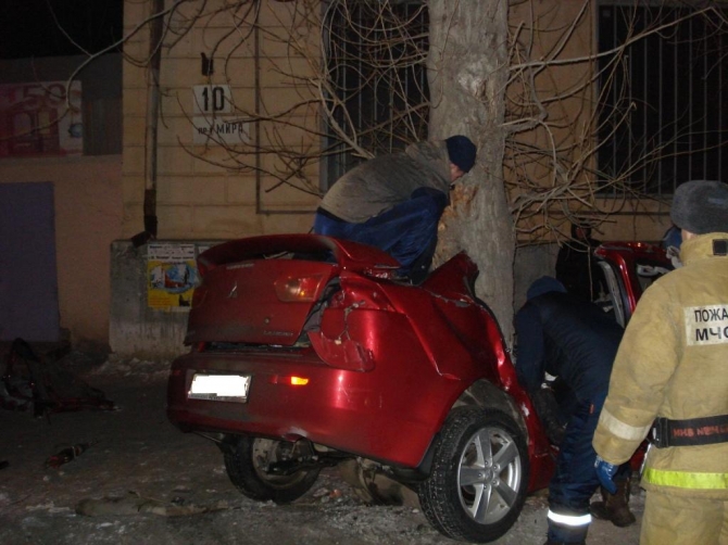 Легковой автомобиль Mitsubishi Lancer двигался на высокой скорости по ул. Мира. По предварительной причине водитель, не справившись с управлением, совершил выезд на полосу встречного движения и столкнулся с находящимся на обочине деревом.
