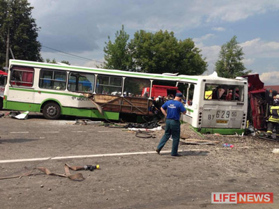 На территории Новой Москвы КамАЗ протаранил рейсовый автобус, разорвав его надвое. 14 человек погибли, 29 - ранены.
