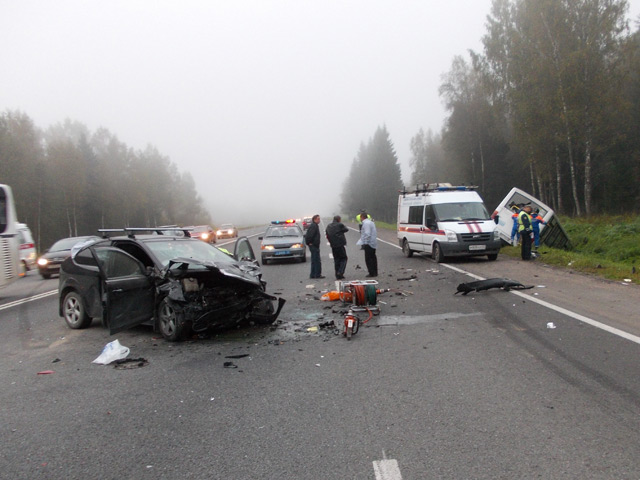 В Тосненском районе Ленинградской области в среду утром произошло крупное ДТП, жертвами которого стали пять человек, еще 12 пострадали. Как говорится на сайте регионального ГУ МЧС, сообщение об аварии на повороте в сторону поселка Новолисино поступило около семи часов утра.