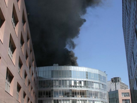 В Москве в центральном здании бизнес-центра "Омега плаза", расположенного по адресу Ленинская Слобода, 19, произошел крупный пожар. Его удалось ликвидировать менее чем за час. Огнем была охвачена крыша здания. Сотрудники правоохранительных органов проводили эвакуацию. В соседнем здании на территории бизнес-центра располагается редакция NEWSru.com.