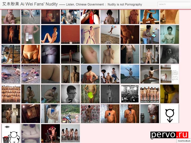 Голая массовка в интернете проходит под лозунгом: "Фанаты Ай Вэйвэя обнажаются. Внимание, правительство Китая: нагота - не порнография".