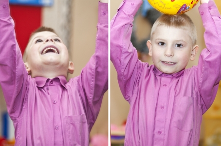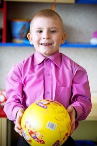 Женя С. – очень общительный и любознательный мальчик. Встреча с нашим фотографом обеспечила его впечатлениями на весь день: ещё бы, такого большого фотоаппарата он не видел никогда. А особенно серьезен Женя стал, когда ему позволили подержать его и даже сфотографировать самому. А ещё ему понравилось позировать: он даже сам придумывал образы, позы и продемонстрировал пару приемов с мячом, которым бы позавидовал Марадона.