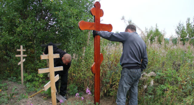 Выполнять поручение отправились работники кладбища Женя и Андрей. Сначала они собрали останки в пакет, а затем предали их земле. На могиле молодые люди даже установили крест, который, правда, тоже нашли в куче мусора.