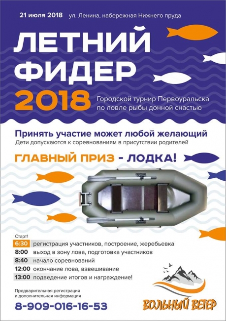 21 июля на набережной Нижне-Шайтанского пруда состоится любительский турнир по ловле донной снастью (фидер) с берега. По результатам ловли будут определены три лучших рыбака. Главный приз – рыбацкая лодка.